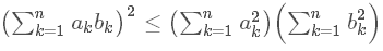 \begin{equation}\ \left( \sum_{k=1}^n a_k b_k \right)^2 \leq \left( \sum_{k=1}^n a_k^2 \right) \left( \sum_{k=1}^n b_k^2 \right) \end{equation},效果如下: